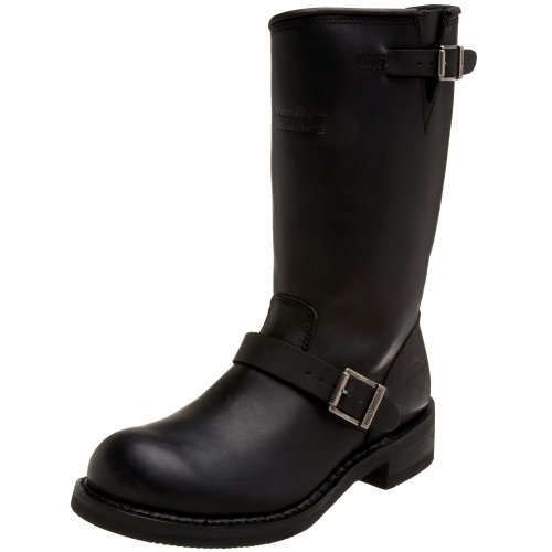 Everyone needs a classic biker boot in his closet or on his feet, and Harley Davidson has created a winner with this one. The rugged leather upper features a buckled strap at the ankle and an embossed logo on the shaft. The rubber sole is not only sturdy, it offers a pop of color in the distinctive Harley orange. Cool, comfortable, classic.